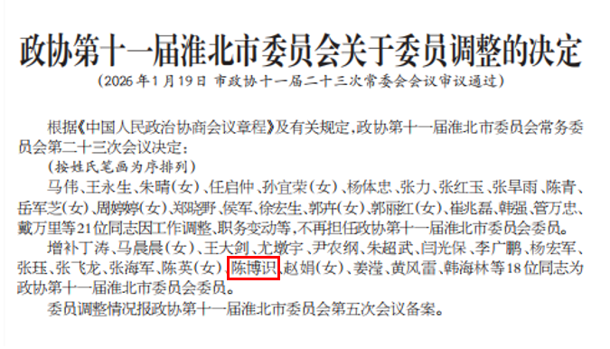 1月19日,經(jīng)淮北市政協(xié)十一屆二十三次常委會(huì)會(huì)議審議通過(guò),我院英語(yǔ)教研室教師、九三學(xué)社社員陳博識(shí)增補(bǔ)為政協(xié)第十一屆淮北市委員會(huì)委員