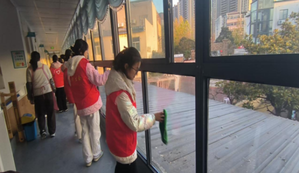 同學(xué)們身著紅色志愿馬甲來到杜集區(qū)夕陽紅托老院,有的拿起抹布、有的拿起掃帚、有的拖把,開始養(yǎng)老院的衛(wèi)生清潔工作,對(duì)托老院活動(dòng)室門窗、桌椅扶手、走廊窗臺(tái)、休息區(qū)座椅等公共區(qū)域進(jìn)行全方位清潔整理,為老人們創(chuàng)造更加整潔舒適的居住環(huán)境。