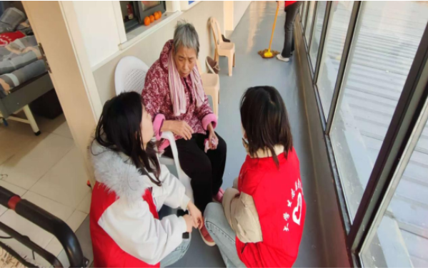 打掃完衛(wèi)生之后,同學(xué)們圍攏到老人們身邊,開啟了暖心互動(dòng)時(shí)光。有的志愿者坐在老人身旁促膝長(zhǎng)談,認(rèn)真傾聽長(zhǎng)輩們講述年輕時(shí)的奮斗歷程與時(shí)代變遷的難忘故事;有的小心翼翼地推著行動(dòng)不便的老人在院區(qū)邊漫步邊聊聊家常瑣事;還有的主動(dòng)走進(jìn)老人房間,幫忙整理物品、收拾床鋪,耐心詢問老人們的日常起居需求與健康狀況。老人們也反復(fù)叮囑同學(xué)們“要珍惜當(dāng)下時(shí)光,好好讀書學(xué)習(xí),將來報(bào)效祖國”。志愿者們的到來,讓院區(qū)處處洋溢著溫馨氣息。