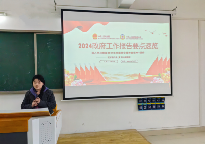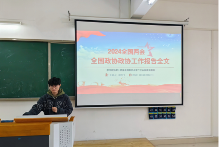 隨后,秦子倩同志領(lǐng)學(xué)政府工作報告、兩會熱詞與兩會期間習(xí)近平總書記重要講話精神。圍繞兩會的最新動態(tài)和熱點議題進行介紹。通過梳理政府工作報告中的關(guān)鍵點,解讀與大學(xué)生息息相關(guān)的政策導(dǎo)向,聚焦教育、就業(yè)等領(lǐng)域的新舉措、新目標(biāo),讓大家進一步深入了解兩會內(nèi)容。